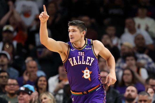 本场比赛中,太阳的先发得分后卫格雷森-阿伦(Grayson Allen)的表现还是值得肯定的。阿伦全场出场22分05秒,投篮11中5,三分线外6中3,得到了13分2篮板2助攻1抢断1盖帽的数据,还有2次失误和1次犯规,正负值为+20。阿伦在进攻端也是展现出了相当不错的投射能力,他也是具备一定的支配球能力的,他在防守端的表现也是值得肯定的,他至少还是有着很高的防守积极性并且在防守端起到了一定的作用的。阿伦在本场比赛中的表现算得上是攻守兼备,如果他能够进一步优化自己的进攻选择,他的整体表现还能够更上一层台阶。不过无论如何,他的整体表现已经是相当不错了,看起来他的整体状态也是保持在一个较高的水准。